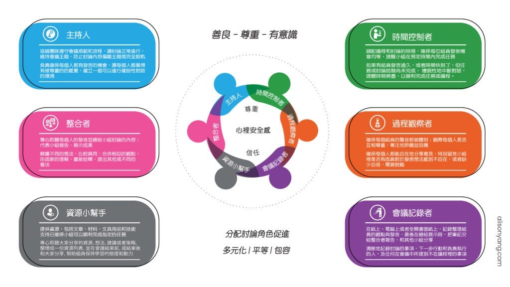 School leaders, please consider using conversation roles as an effective meeting strategy. Thinking back my reflection and learning on Professor Amy Edmondson’s work on teaming in my previous blog post, “Teaming: Collaborate to Innovate and Impact”, she mentioned that before teams can collaborate and innovate, it is crucial to create psychological safety, and one of the strategies is to create opportunities and questions for people to speak up. Leaders intentionally create psychological safety for others by inviting others to share their ideas and opinions and making them feel safe. I think using conversation roles can help create a feeling of inclusion and allow participants (learners) to explore topics or issues further.