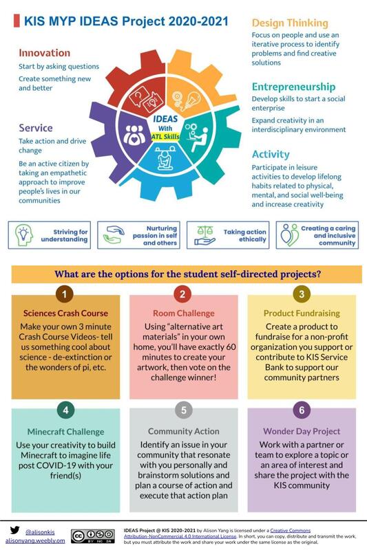 Here is the list of student-directed project choices for our students to choose from this year (2020-2021). People sometimes ask why we give a list of options rather than just have students do their inquiry projects. We ask our students. They prefer to have a list of open-ended projects. Many students share they work better when there is a ‘challenge’ presented to them. Of course, for students who want to do anything that is not on the list, the Wonder Day project serves for this purpose. Don’t forget to check out our KIS IDEAS 2020 Trello Board.