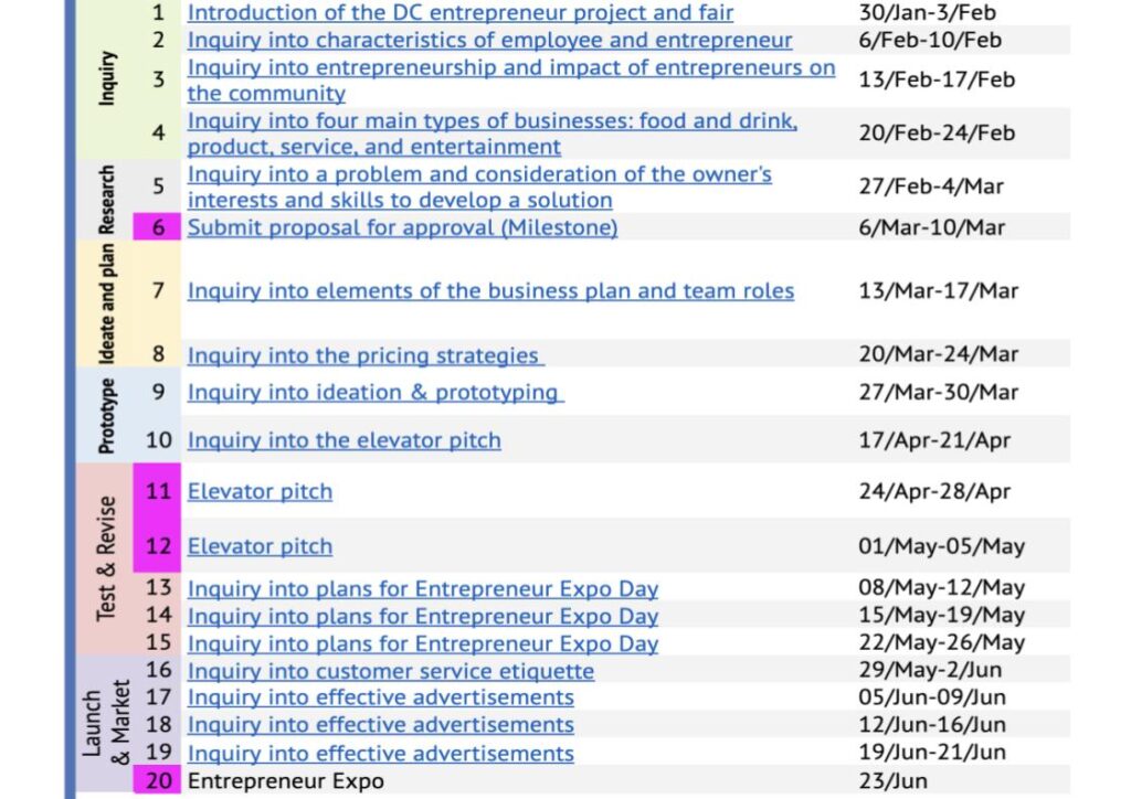 Here are the steps we took to implement the MYP Entrepreneur Project: